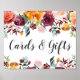 Cartel de boda elegante para exhibir en la mesa de tarjetas y regalos. El diseño presenta un marco de acuarela floral de verano y otoño rústico de hermosas rosas, dalias, flores de peonía y vegetación, en una hermosa paleta de otoño de rojo borgoña, amarillo dorado, naranja melocotón, rosa sonrosado y tonos de verde.