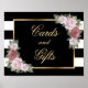 Deje que sus invitados sepan dónde dejar sus tarjetas y regalos con este elegante letrero de tarjetas y regalos florales a rayas negras y blancas con rosas rosadas y vegetación. Artículos coincidentes disponibles.