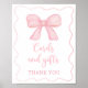 Póster Tarjetas de Bow rosadas y regalos Rótulo de cumple