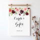 Esta señal de tarjetas y regalos de caligrafía floral de primavera es perfecta para una boda elegante o una despedida de soltera. El diseño pintado a mano presenta hojas verdes, rosas deslumbrantes, rosados, púrpuras, rojos, blancos y burdeos rosas deslumbrantes y peonías ordenadas en pequeños y lindos ramos.