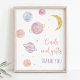 Este diseño adorable presenta planetas acuarelas pintadas a mano con estrellas de Relieve metalizado de oro falsas.
