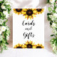 Tarjetas y regalos de girasoles Cartel de boda, pancarta con flores amarillas sobre fondo blanco. Cambie el texto usando la opción personalizar esta plantilla. Para cambios adicionales en el estilo y color del texto, use la opción personalizar aún más.