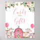 Póster Tarjetas De Granja Rosa chica Y Rótulo Regalo