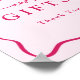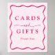Añada un toque elegante a su boda, ducha de novia, ducha de bebé, fiesta de graduación u otro evento especial con este símbolo de regalo y tarjetas de marco ondulado rosado modernas. El diseño incluye "Tarjetas y Regalos" con letras en negrita y rosa rodeadas de un borde ondulado rosa que contrasta con un fondo rosa claro. Personalice el signo de las tarjetas retro y los regalos con el texto de su personalizado a continuación. Elija entre opciones profesionales de impresión o descarga instantánea, proporcionando flexibilidad para su comodidad.