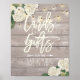 Mesa de Regalo boda / Tarjetas y Regalos Bodas Plantillas Posters de Rótulo - Elegante color de agua blanco adorable Hidrangea Flores y cadenas de luz sobre fondo rústico de madera. ¡Un Diseño Perfecto Para Tu Gran Día! Todos Los Estilo De Texto, Los Colores Y Los Tamaños Se Pueden Modificar Para Ajustarse A Sus Necesidades.