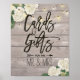 Mesa de Regalo boda / Tarjetas y Regalos Bodas Plantillas Posters de Rótulo - Elegante color de agua blanco adorable Hidrangea Flores y cadenas de luz sobre fondo rústico de madera. ¡Un Diseño Perfecto Para Tu Gran Día! Todos Los Estilo De Texto, Los Colores Y Los Tamaños Se Pueden Modificar Para Ajustarse A Sus Necesidades.