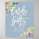 Mesa de regalos de boda / tarjetas y regalos Plantillas de carteles de señaligen de decoración de boda - Elegantes y encantadoras plantas suculentas de acuarela sobre fondo azul. ¡Un diseño perfecto para tu gran día! Todo el estilo de texto, colores, tamaños pueden ser modificados para adaptarse a tus necesidades.