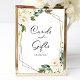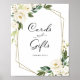 Tarjetas florales blancas de verde y letrero de regalos