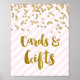Tarjetas y regalos poster de señas bodas con rayas claras y rosa pastel claro y rayas blancas con confeti dorado y letras a mano.