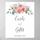 "tarjetas y regalos" elegante cartel de boda floral. Presenta un diseño de caligrafía de estilo con letras a mano y una disposición floral rosa de acuarela.