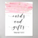 Este cartel de acuarela de color rosa y tarjetas y regalos dorados es perfecto para una boda o ducha de novia con un tema moderno, romántico y dulce. El diseño femenino lujoso presenta una textura de acuarela rosa claro con un toque de polvo de purpurina dorada falsa y una fuente de escritura de caligrafía elegante. La línea de texto en la parte inferior del cartel se puede personalizar con la fecha, los nombres de la novia y el novio, o un mensaje corto como "Gracias".