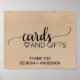 Esta sencilla tarjeta de caligrafía falsa kraft y el cartel de regalos es perfecto para una boda con tema rústico o moderno. El diseño minimalista presenta una elegante fuente de letra a pincel y un encantador corazón femenino. La línea de texto en la parte inferior del letrero se puede personalizar con la fecha, los nombres de la novia y el novio, o un breve mensaje como "Gracias".