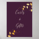 Póster Tarjetas y regalos elegantes de hojas doradas púrp