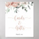 Este clásico cartel de tarjetas y regalos florales de rosa polvorienta es perfecto para una boda rústica o una ducha de novia. El diseño presenta elegantes rosas de color rosa polvoriento pintadas a la acuarela y follaje verde, reunidos cuidadosamente en hermosos ramos.
