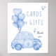 Poster de mesa de tarjetas y regalos con auto acuarela y racimo de globos azules. Un diseño moderno para el cumpleaños de tu pequeña novia o para un fiesta con temática de amor en cualquier época del año. Por favor, envíeme un mensaje si desea algún producto similar.