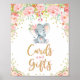 Póster Tarjetas y regalos Rótulo Elefante Floral Baby Sho
