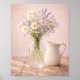 Este arte de pared de lona con flores silvestres de granja presenta un suave ramo de margaritas, lavanda y delicadas flores rosadas dispuestas en un frasco de vidrio transparente junto a una clásica jarra de cerámica blanca. La cálida mesa de madera rústica y la suave luz natural crean una escena pacífica inspirada en una cabaña. Perfecto para cocinas de granja, comedores, dormitorios o espacios acogedores, esta obra de arte en lona añade un encanto botánico atemporal y una elegante elegancia campestre a la decoración de tu hogar.