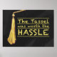 ¡Lo hiciste! La graduación está muy cerca. Obtén a esa persona especial que pasó por todo el lío para estudiar duro y graduarse de la secundaria, la universidad o cualquier otra escuela una tarjeta de felicitación o un regalo con nuestro divertido diseño ilustrado de un tacón amarillo dorado contra nuestra textura característica negro con las palabras en un amarillo dorado, la tassel valía la pena la molestia. ¡Felicitaciones por su logro!