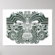 Las tribus maoríes de Nueva Zelanda son conocidas por sus elaborados tatuajes. Este diseño se basa en un tradicional tatuaje facial. Renderizado en piedra serpentina. Arte por computadora de Kathie Miller.
