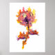 colorido diseño de tatuaje floral de un rosa en llamas como una impresión decorativa poster