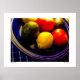 Añade algo de color a tu mundo con este Poster, una fotografía original de la fruta en un tazón azul cobalto. Algunos limones, aguacates y tomates añaden amarillo, verde y rojo a la mezcla, todo bajo una cálida luz amarilla. Debajo de la foto hay un pequeño texto con el título: Blue Bowl de fruta, y artista: Imagen de L.M.Glenn.