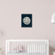 El arte de tipografía con tema de cielo nocturno presenta la cita "te amo hasta la luna y de regreso" en letras de estilo a mano inscritas en una luna luminosa sobre un fondo azul oscuro de medianoche salpicado de estrellas. Una adición única a tus paredes o a la guardería de un bebé.