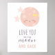 Cute cartel de guardería rosa "Te amo hasta la luna y de vuelta". Contacta conmigo, por favor, si necesitas un cartel de un color diferente.