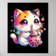 Póster Té de burbujas de gato anime japonés Kawaii Neko B