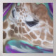 Un primer plano y una imagen personal del perfil de un personalizado de la jirafa diseñado en un poster por Riches de Su Gloria Fotografía