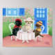 Fiesta de té Labradors Poster para los fanáticos del Labrador. Tres chicas de moda de Labrador Retriever disfrutan de un té de primera en su precioso jardín. Cuadros de labrador pintados por Naomi Ochiai.