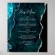 Póster Teal Blue Silver Agate Script Wedding Bar Menu