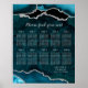 Póster Teal Silver Agate Wedding Seating Chart 10 Table