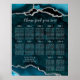 Póster Teal Silver Agate Wedding Seating Chart 12 Table