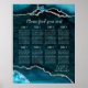 Póster Teal Silver Agate Wedding Seating Chart 8 Table