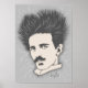 Un diseño "Team Tesla" con el pelo del hombre parado de un ambiente cargado. Blanquecino y negro.