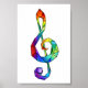 Polígono, arcoiris, brillante clave musical sobre fondo blanco. Tatuaje de polígono. Treble clef