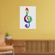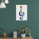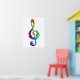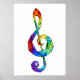 Polígono, arcoiris, brillante clave musical sobre fondo blanco. Tatuaje de polígono. Treble clef