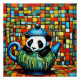 A.I. creó la impresión surrealista de un Panda asomándose a una tetera colorida, rodeada por un mosaico vibrante de formas geométricas, patrones de tonos audaces.
