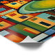 A.I. creó la impresión surrealista de un Panda asomándose a una tetera colorida, rodeada por un mosaico vibrante de formas geométricas, patrones de tonos audaces.