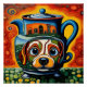 A.I. creó la impresión surrealista de un Panda asomándose a una tetera colorida, rodeada por un mosaico vibrante de formas geométricas, patrones de tonos audaces.
