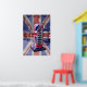 El príncipe Harry haciendo la mano en un teléfono pintado con la bandera de Union Jack