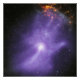 Los "huesos" de una mano cósmica fantasmal se hacen visibles en esta imagen compuesta creada a partir de la combinación de datos de dos observatorios de rayos X de la NASA. Los rayos X de baja energía se ven en naranja y los rayos X de mayor energía son vistos en verde y azul por la nave espacial Chandra. Las imágenes púrpura difusas son del observatorio de rayos X IXPE. El área luminosa de la base de la mano es un pulsar, una estrella de neutrones giratoria con un campo magnético fuerte.