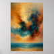 A symphony of motion and stillness, Tempest Serenity captures the abstract tension between sky and sea—between chaos and calm. Swirling clouds in fiery orange, golden yellow, and deep indigo erupt across the canvas, echoing the emotional turbulence of a storm in transition. Below, a tranquil ocean reflects the drama above in softened blues and turquoise, grounding the viewer in quiet contemplation.