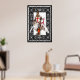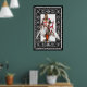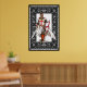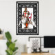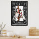 el templo knight en armor poster muestra un caballero cruzado medieval de la Inglaterra medieval con armadura completa con la cruz simbólica roja de inglaterra que es de las cruzadas en el momento en que el rey Richard el Corazón de León estaba en el trono. Rodeado por un borde árabe en blanco y negro, este Caballero Templario se desliza hacia ti con espada en la mano y escudo en su brazo. Hace una imagen impresionante para todos los jugadores de fantasía o de rol histórico, jugadores o amantes de la historia británica y juegos interactivos.