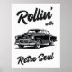 Celebra la elegancia del pasado con este impactante gráfico en blanco y negro que presenta un auto vintage y la frase "Rollin' con el alma retro". La paleta de colores minimalista destaca los detalles complejos del coche, lo que lo convierte en una pieza perfecta para los amantes de los automóviles clásicos y el diseño refinado.