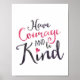 Tener valor y ser gentil, la huella de color rosa de las acuarelas presenta una tipografía escrita a mano moderna con acuarelas rosas y negras. ¡Un gran arte inspirador para el dormitorio de una niña!