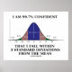 Muestra tu humor geek de las estadísticas irónicas con este poster de la curva de campana que presenta porcentajes bajo la curva junto con las estadísticas clásicas que dicen: "Tengo un 99.7% de confianza en que me sumerjo a 3 desviaciones estándar de la media". ¡Que otros hagan una doble toma con una dosis de actitud educativa, de confianza estadística científica hoy!