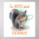 Muestra tu amor por el tenis con esta ardilla linda sosteniendo un racquet de tenis y una pelota, y las palabras que soy Nuts sobre el tenis.