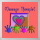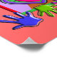 Funky y Artsy Massage poster, manos de estilo grabado en relieve y diseño cardiaco. Ideal para oficinas o casas.