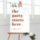 Bienvenido a sus bodas invitados con este romántico cartel de bienvenida boda. Este cartel de bienvenida boda personalizable presenta un guión delgado con tipografía clásica. Esta terracota EL FIESTA EMPIEZA AQUÍ es perfecto para cualquier tema boda.